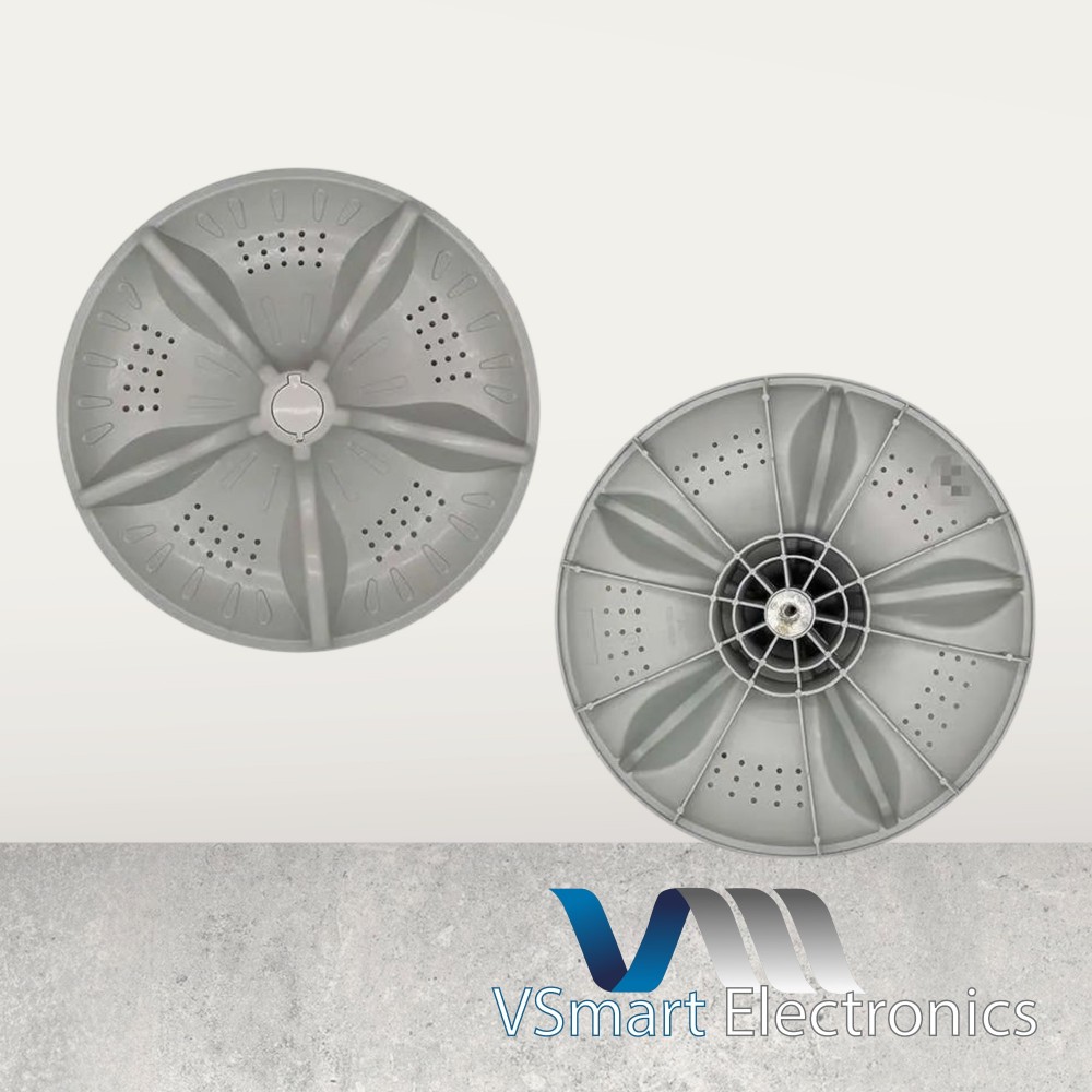 The pulsator is a rotating disc located at the bottom of the wash tub. It creates a 3D water current to lift and agitate clothes, ensuring deep cleaning and minimal fabric wear. It replaces traditional agitators for a gentler yet effective wash.
